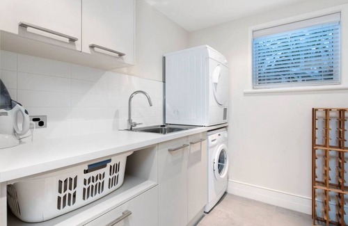Downstairs you will find a laundry to your left, another bathroom with adjoining door to the spacious second bedroom, and the third and fourth bedrooms. The bedrooms are sumptuous, presented in warm, relaxing hues. Artwork, photography and natural beauty are displayed throughout the home to provide the finishing touch on your stay.